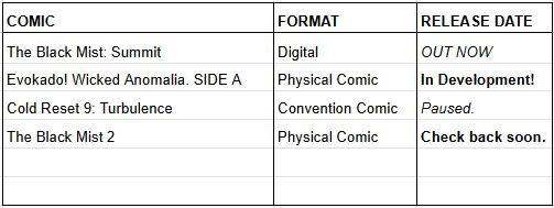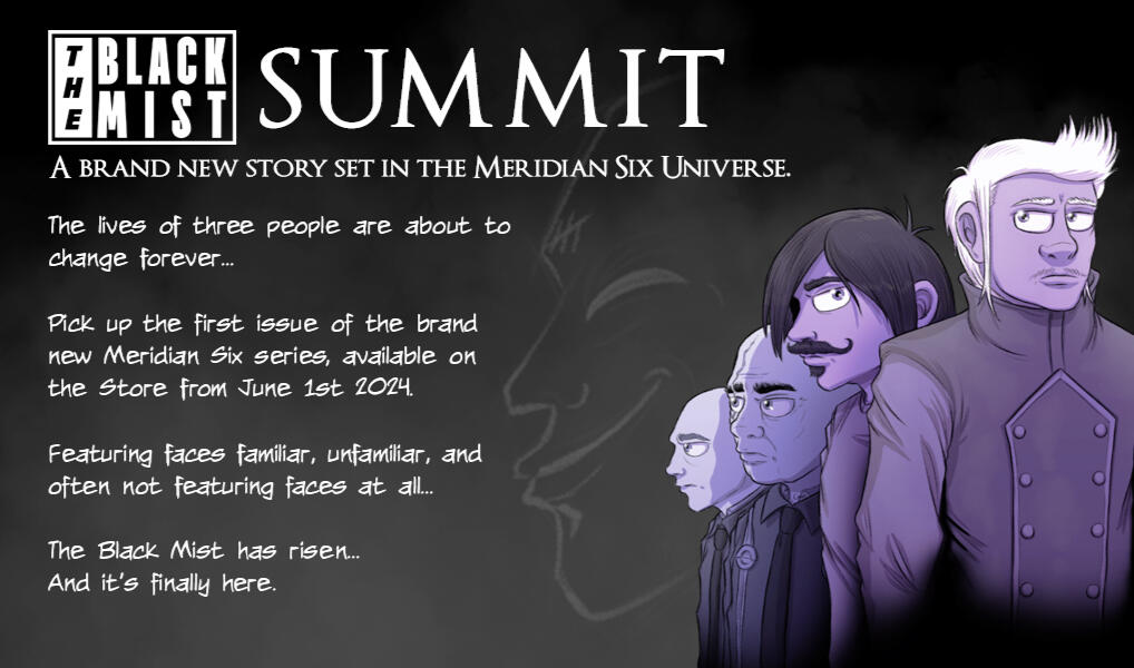 The first issue of The Black Mist, subtitled Summit, launched at InkBlot Indie Comic Festival on May 18th 2024 to incredible success! Thanks so much to everyone who grabbed a copy and I hope you enjoyed a taster of what's to come...The comic will be making a return at the next InkBlot and Thought Bubble Festival! But if you can't make it to the cons and would like your own copy, head over to the Physical Store to grab one!The Black Mist: Summit is now available digitally too!